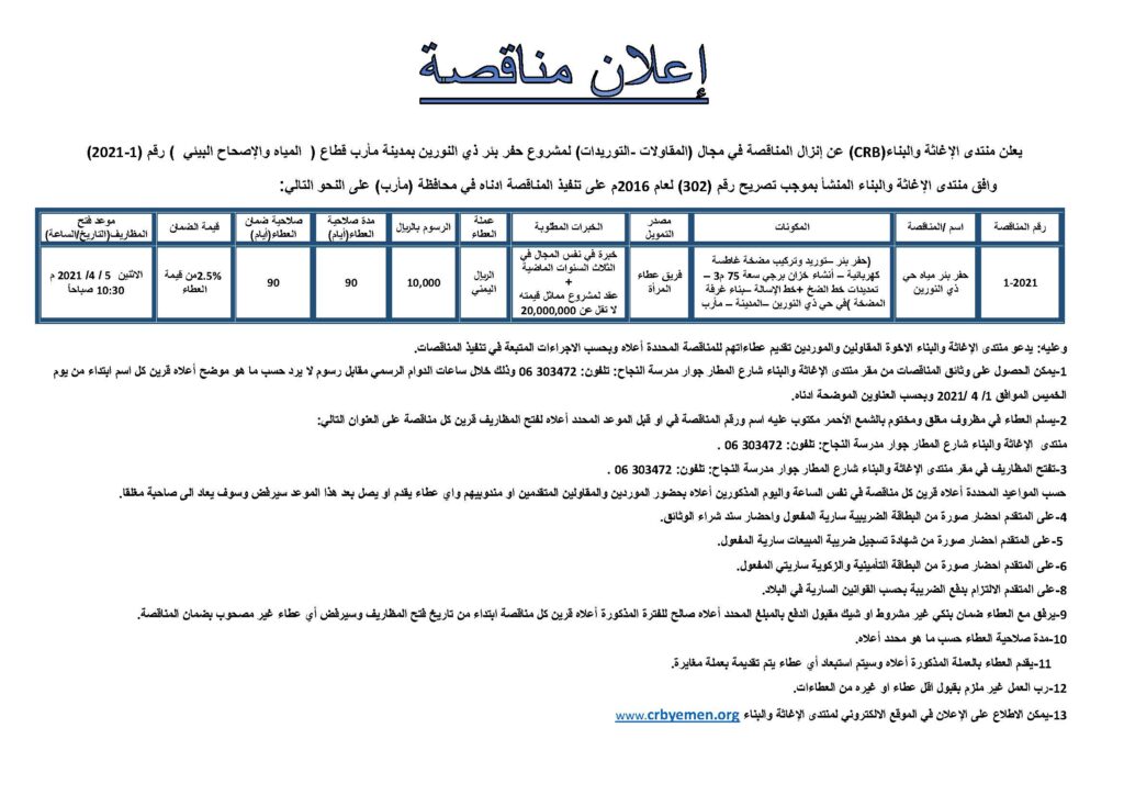 أصدر منتدى الإغاثة والبناء (CRB) تقريره الدوري للمشاريع والأنشطة الإنسانية والإغاثية والتنموية التي نفذها خلال الربع الأول من العام الجاري 2021م. وأوضح التقرير أن CRB نفذ […]
