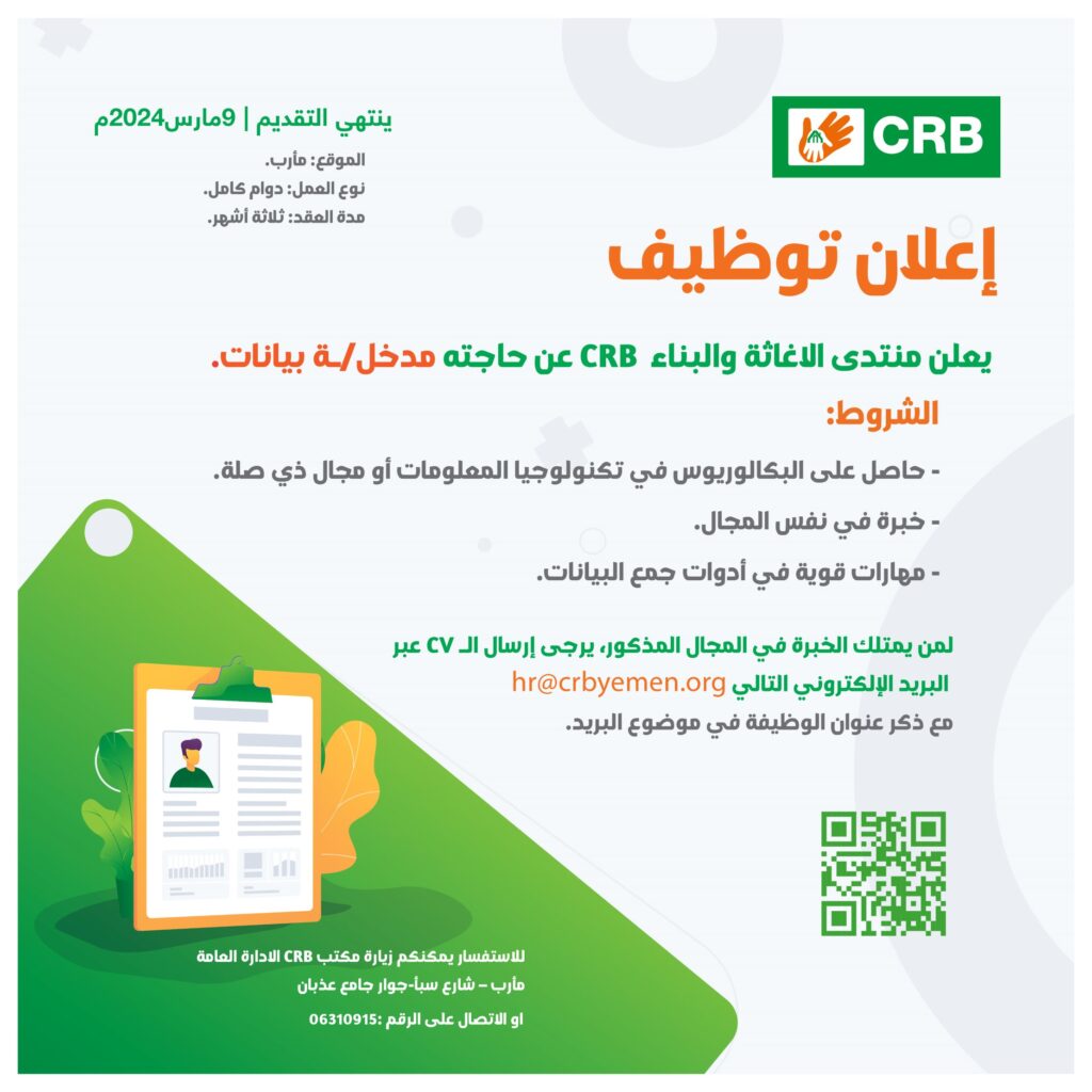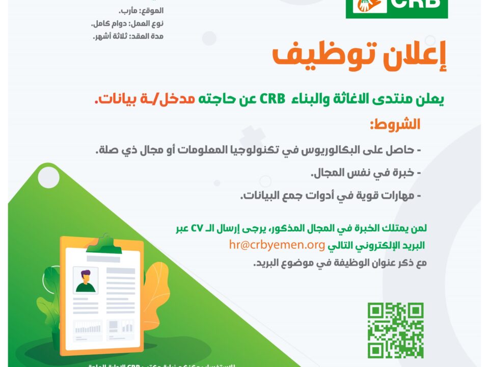 وظيفة شاغرة: مدخل/ـة بيانات. الموقع: مأرب. نوع العمل: دوام كامل. مدة العقد: ثلاثة أشهر. وفق الشروط التالية: – حاصل على البكالوريوس في تكنولوجيا المعلومات أو مجال […]