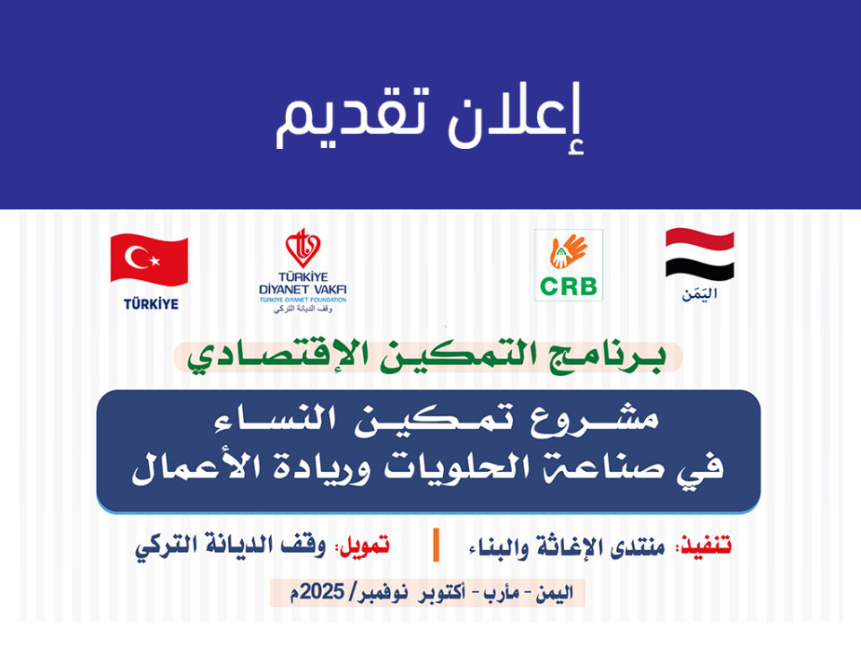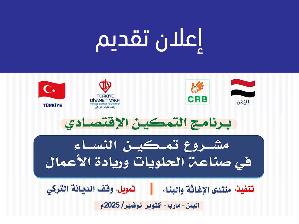 أكتوبر 16, 2025 أكتوبر 16, 2025إعلان تقديم لمشروع تمكين النساء في صناعة الحلوياتيسر منتدى الإغاثة والبناء أن يعلن عن فتح باب التقديم لمشروع “تمكين النساء اقتصاديًا من خلال التدريب في صناعة الحلويات وريادة الأعمال”، الذي يهدف إلى دعم […]