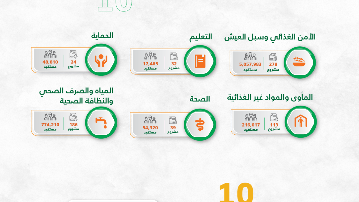 على مدى العقد المنصرم، نفذ CRB ما يزيد عن (672) مشروعا إنسانيا وتنمويا، غطت 19 محافظة يمنية. وقد أثمرت هذه التدخلات عن خدمة أكثر من (6,169,805) مستفيد بفضل تمويل كريم ومتعدد المصادر من جهات محلية إقليمية ودولية.