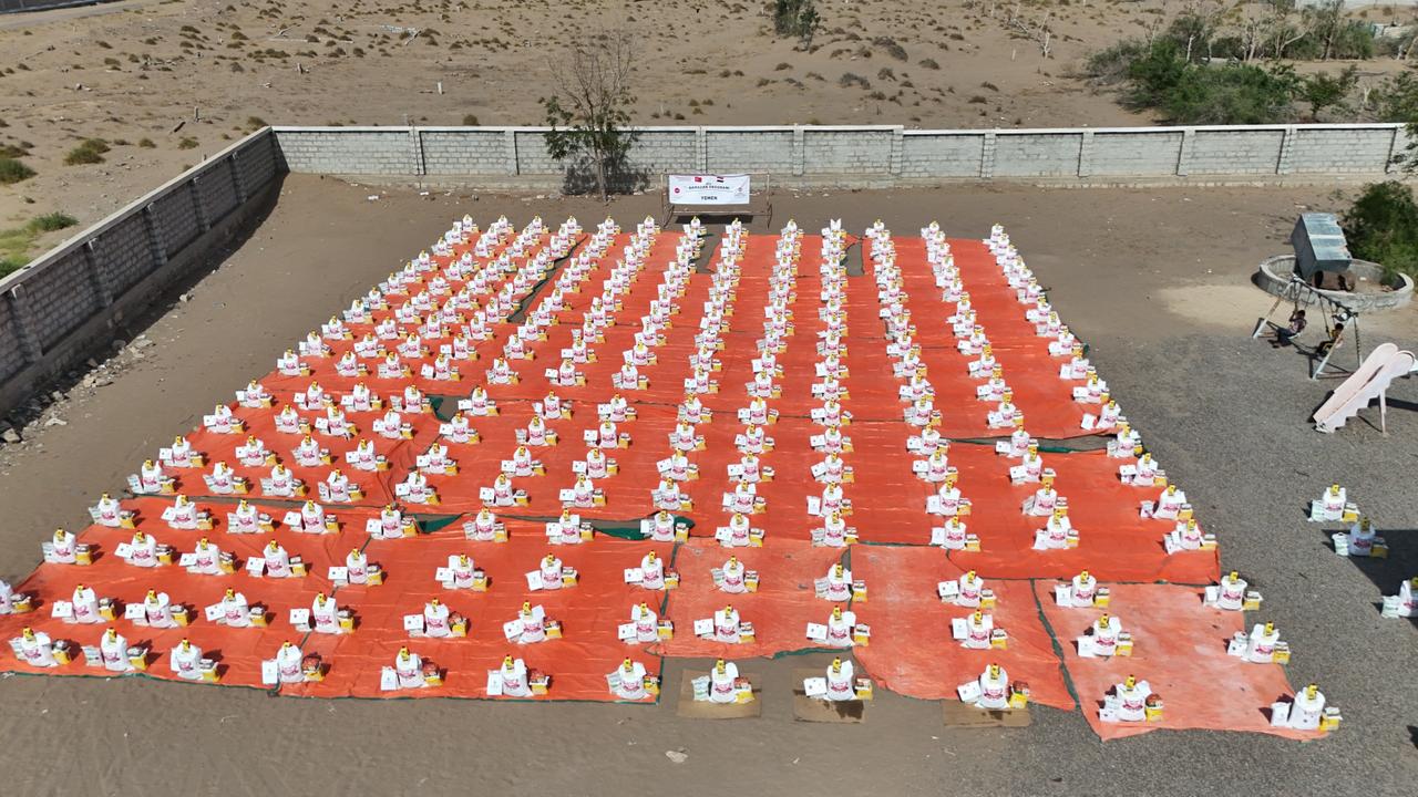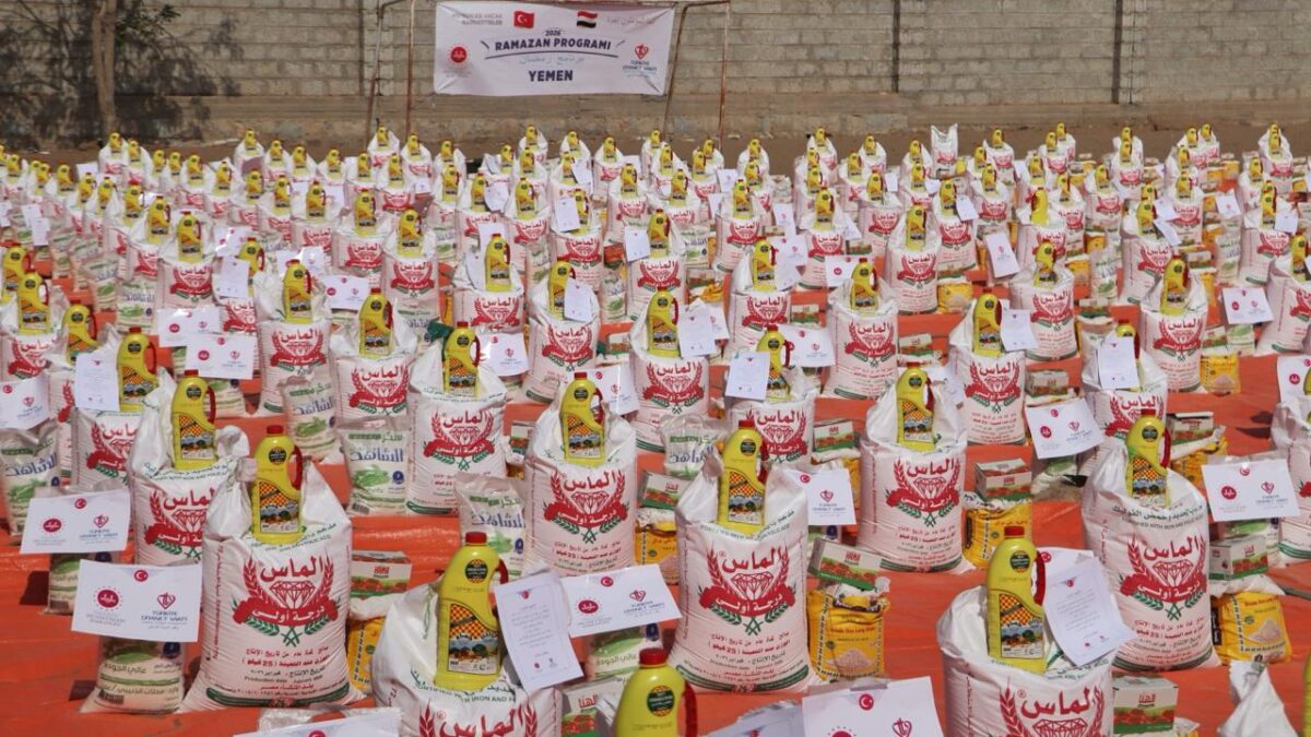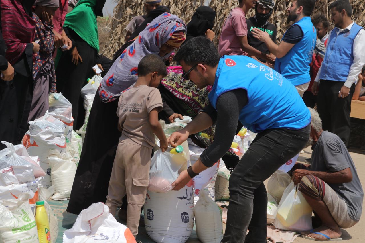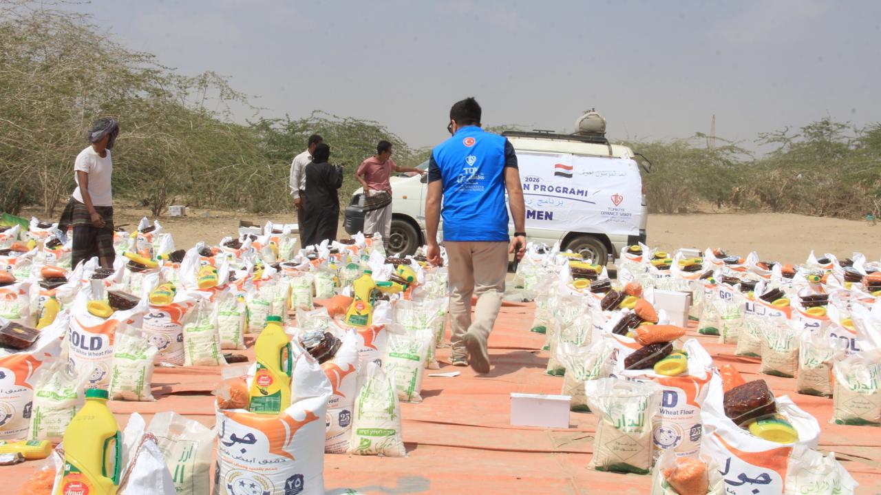 500 سلة غذائية تخفف أعباء المعيشة عن أسر محتاجة في تعز بدعم وقف الديانة التركي