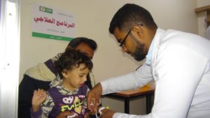 واستهدف المشروع ٥٦ حالة مرضية من الاسر الفقيرة والنازحة والمتضررة من الاحداث توزع علاجهم على ثلاث عيادات (الباطنية ، الاطفال ، النساء والولادة).