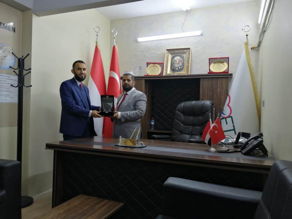 وفي ختام الزيارة سلم رئيس CRB د كمال صالح القدمي درع تذكاري لرئيس جمعية الرحمة الدكتور محمد السودي شكرا وعرفانا لشراكتهم الرائدة مع CRB ودعمهم للمشاريع الاغاثية والانسانية في اليمن .