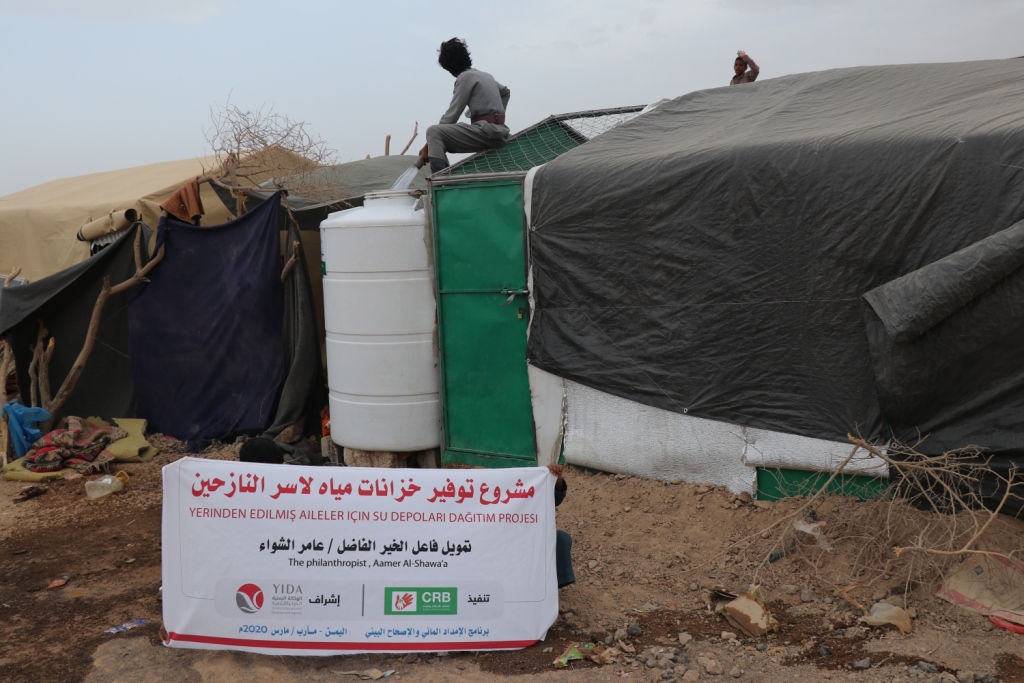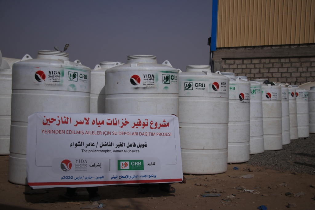 CRBيوزع ١٢٠ خزان مياه في مأرب