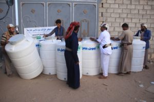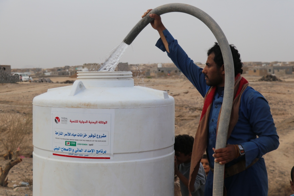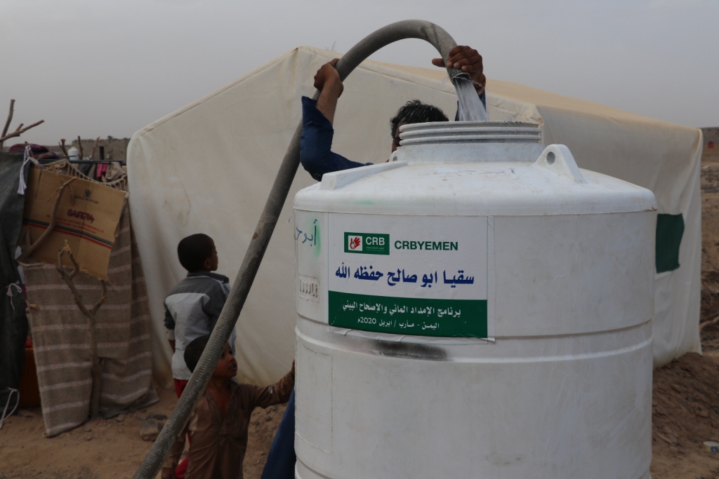 CRB يوزع 50 خزان مياه للنازحين في مأرب بتمويل من الوكالة اليمنية الدولية للتنمية