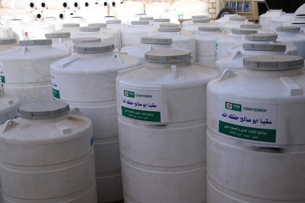 CRBيوزع ١٢٠ خزان مياه في مأرب