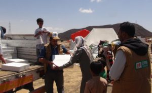 تدشين مشروع توزيع ١٠٠ خيمة بمستلزمات الايواء