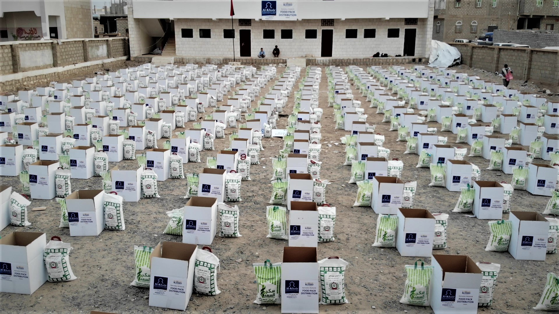 وجرى خلال المشروع توزيع ١٤٥٧ سلة رمضانية على الأسر الفقيرة والنازحة والمتضررة من الأحداث في اليمن.