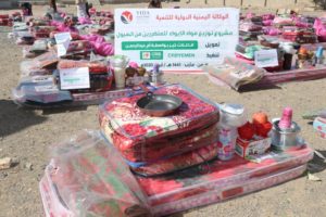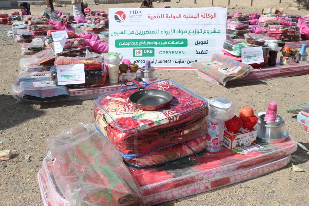وجرى خلال المشروع توزيع ١٠٠ حالة مواد ايوائية شملت الفرش والبطانيات والبسط وادوات الطبخ على ١٠٠ أسرة نازحة ومتضررة من السيول بتمويل من الوكالة اليمنية الدولية للتنمية.
