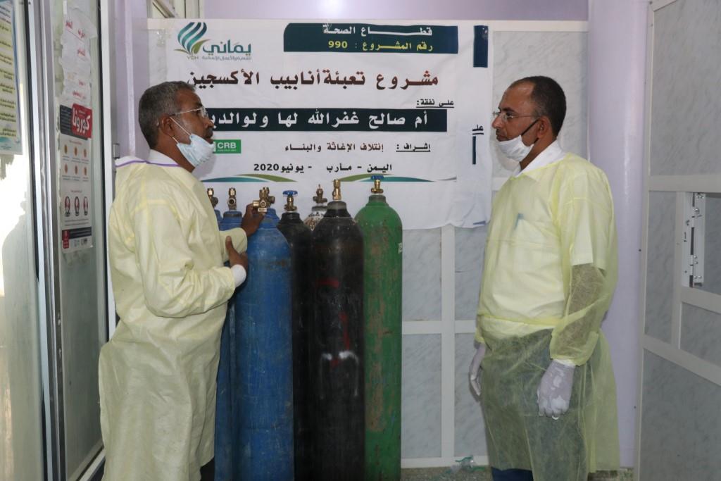 نفذت مؤسسة يماني للتنمية والأعمال الإنسانية بإشراف CRB اليوم مشروع تعبئة20 أسطوانات أوكسجين لمركز العزل بمستشفى 22 مايو في مديرية الجوبة محافظة مأرب.