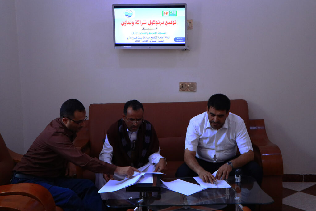 وجرى التوقيع اليوم بمقر مكتب CRBاثناء زيارة مدير مكتب هيئة مياة الريف د علي هذال وذلك للتعاون والشراكه في تنفيذ مشاريع المياة واولها بئر الكوثر الارتوازي في منطقة الصوابين بصرواح .