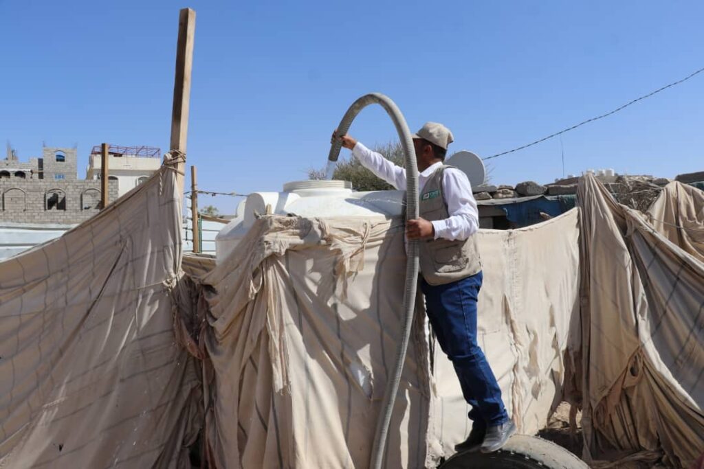 يدشن مشروع سقيا الماء الذي يغطي احتياج 161 أسرة نازحة -مخيم المتحف محافظة مأرب-من المياه لفترة شهر ونصف متواصلة طبقاً لمعايير أسفير.