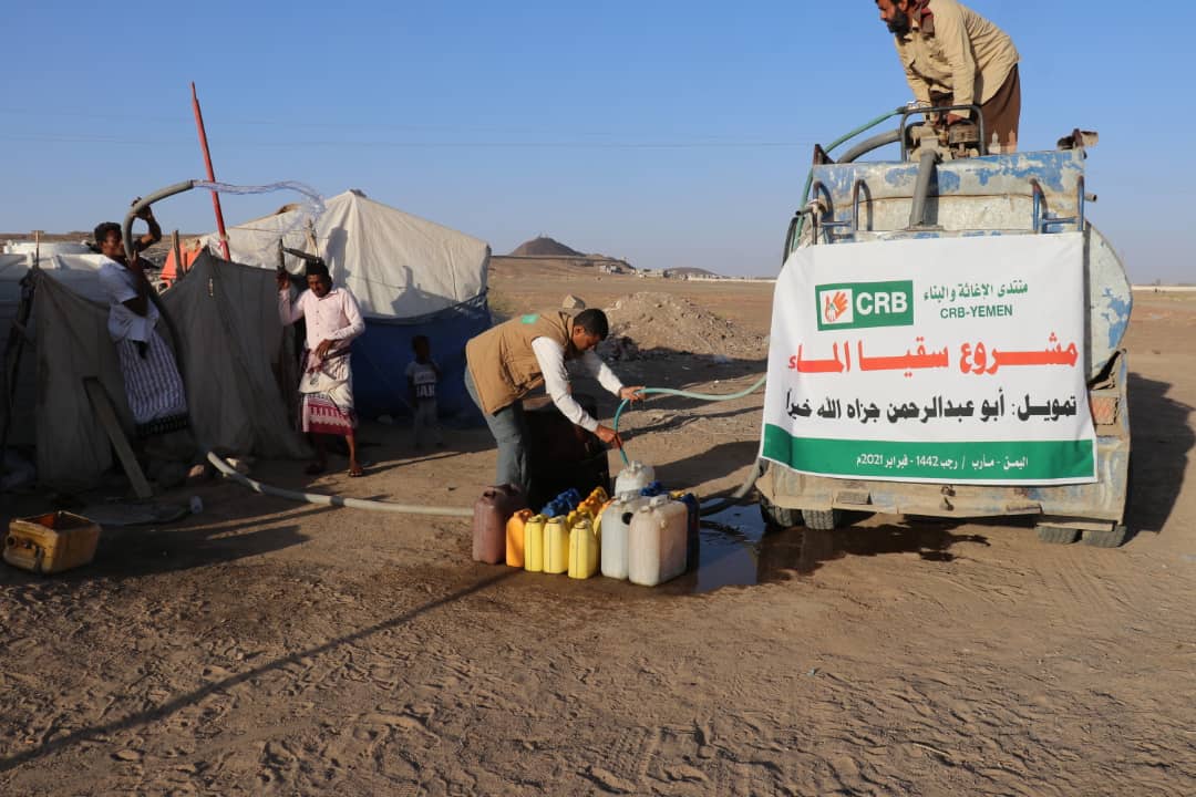 وتعد الخدمات المائية التي يقدمها منتدى الإغاثة والبناء CRB كحفر وترميم الآبار، وتسيير صهاريج المياه لإغاثة النازحين و المتضررين من أهم الأعمال الإنسانية التي تقدم لصالح المجتمع اليمني، حيث تعطى الأولوية في التدخل للمناطق والفئات السكانية الأكثر احتياجاً.