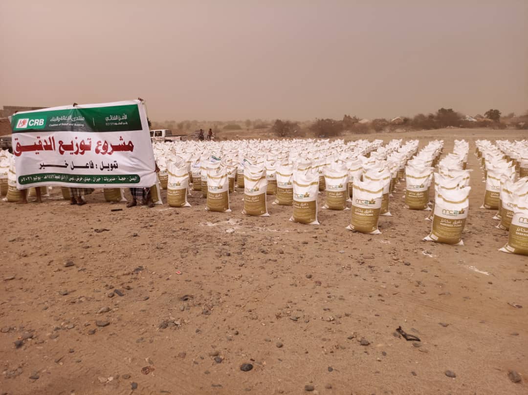 حيث تم توزيع 4 آلاف كيس دقيق زنة 45 كجم، على 4 آلاف أسرة، ليستفيد من المشروع قرابة 24000 فردٍ في مديريات ميدي، حرض، حيران، وعبس.