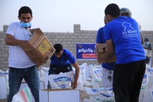 حملة اليمن يناديكم توزع 1000 سلة غذائية في عدن وتعز