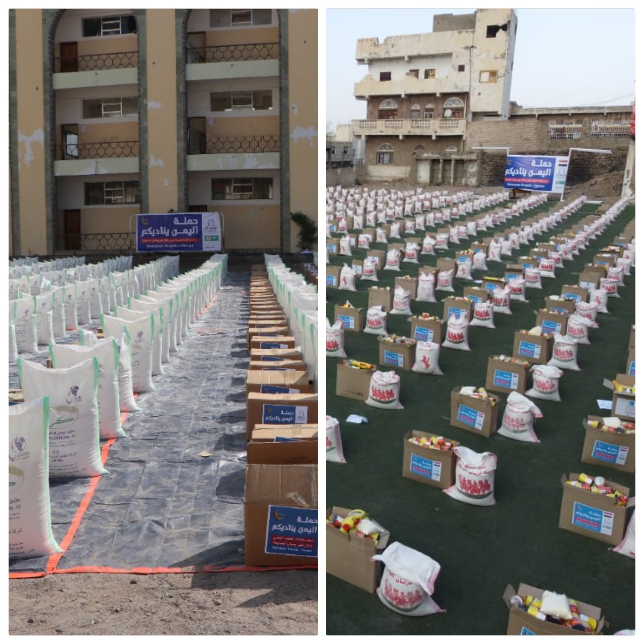 حملة اليمن يناديكم توزع 1000 سلة غذائية في عدن وتعز