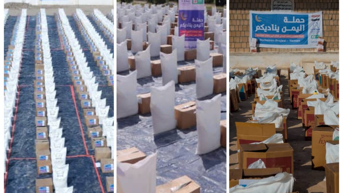 حملة اليمن يناديكم توزع 500 سلة غذائية في محافظة إب