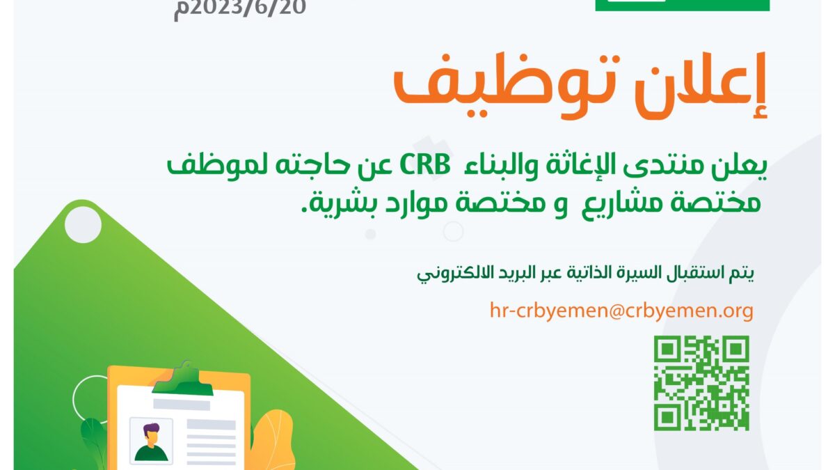 يعلن منتدى الإغاثة والبناء CRB عن حاجته لتوظيف