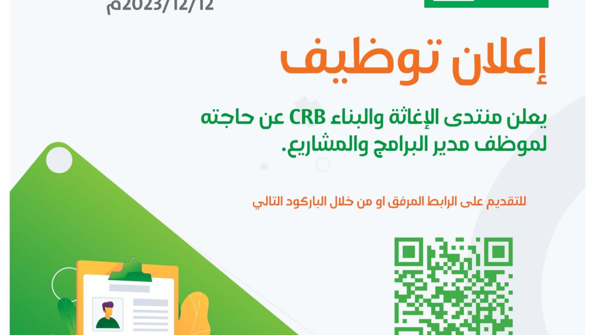 يبحث منتدى الإغاثة والبناء CRB لشغل وظيفة مدير البرامج والمشاريع – محافظة مأرب، يتمتع بخبرة لا تقل عن 3 سنوات في العمل الإداري، وإدارة البرامج والمشاريع في المنظمات الإنسانية والتنموية.